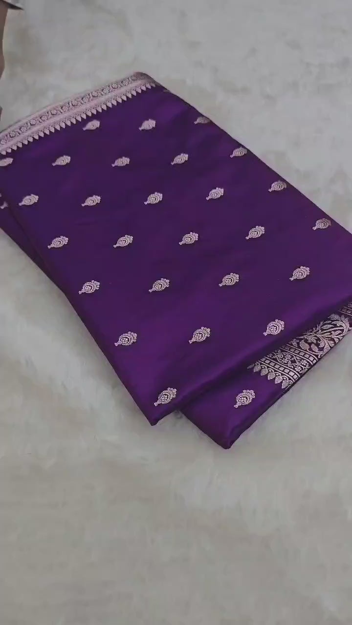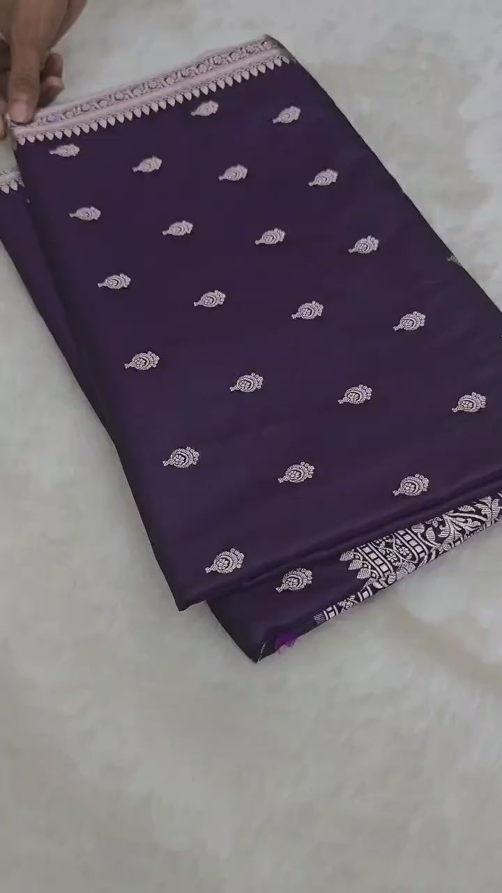 Pure Katan Silk Minakari Banarasi Saree with Floral Brocade Work | Dark Purple -